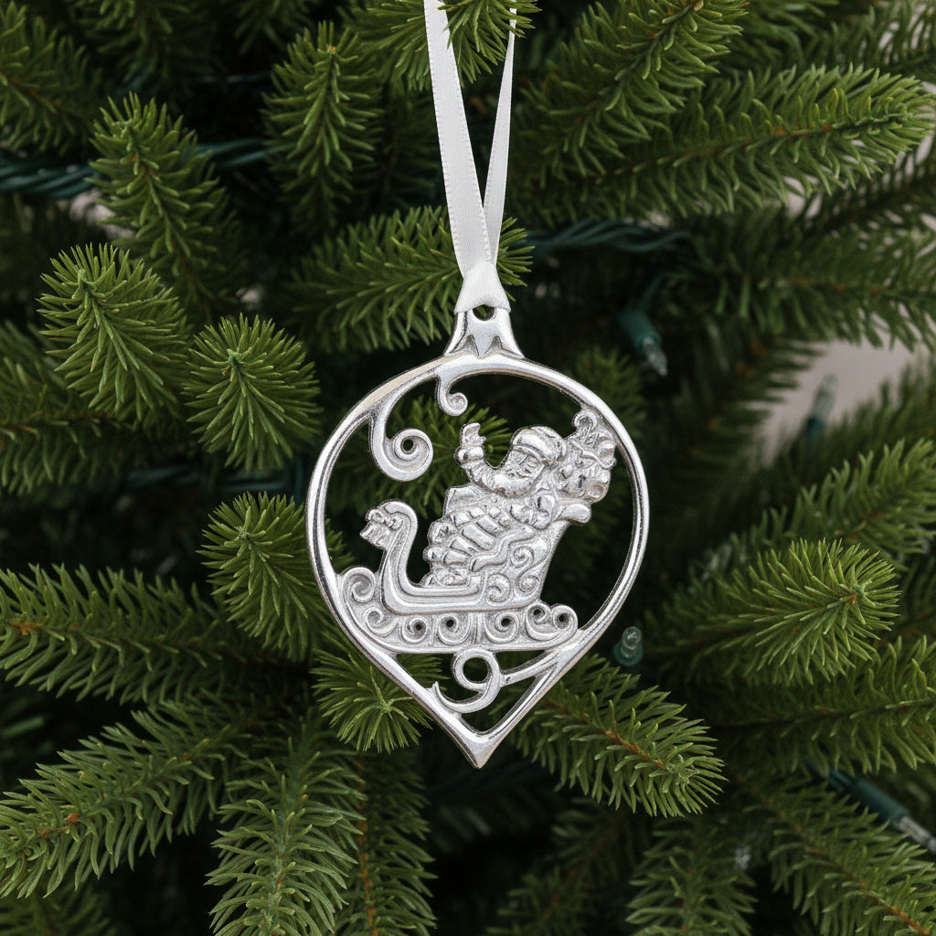 Tired of flimsy plastic baubles? Our pewter decorations add a refined elegance to your Christmas tree. Each ornament includes a sophisticated white ribbon and arrives beautifully gift boxed, making it an ideal seasonal gift.