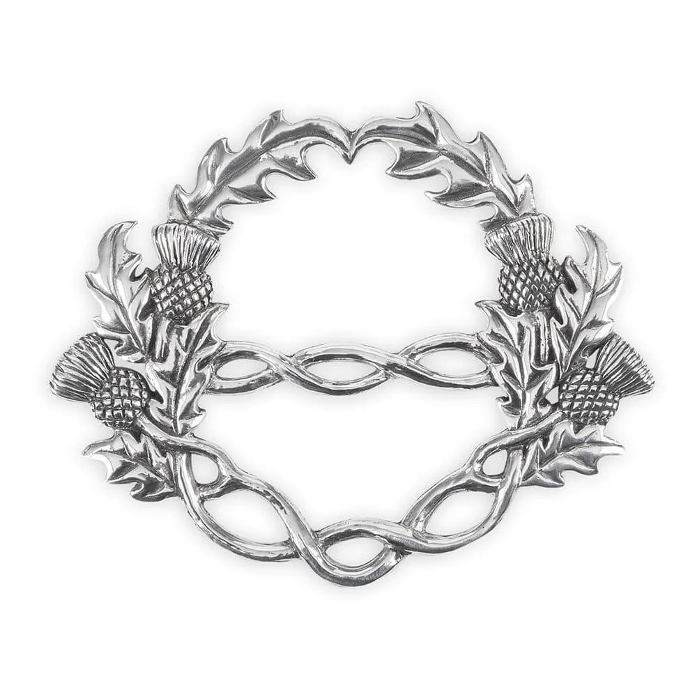 The Thistle Scarf Ring features the celebrated Scottish thistle, a symbol of perseverance and pride.